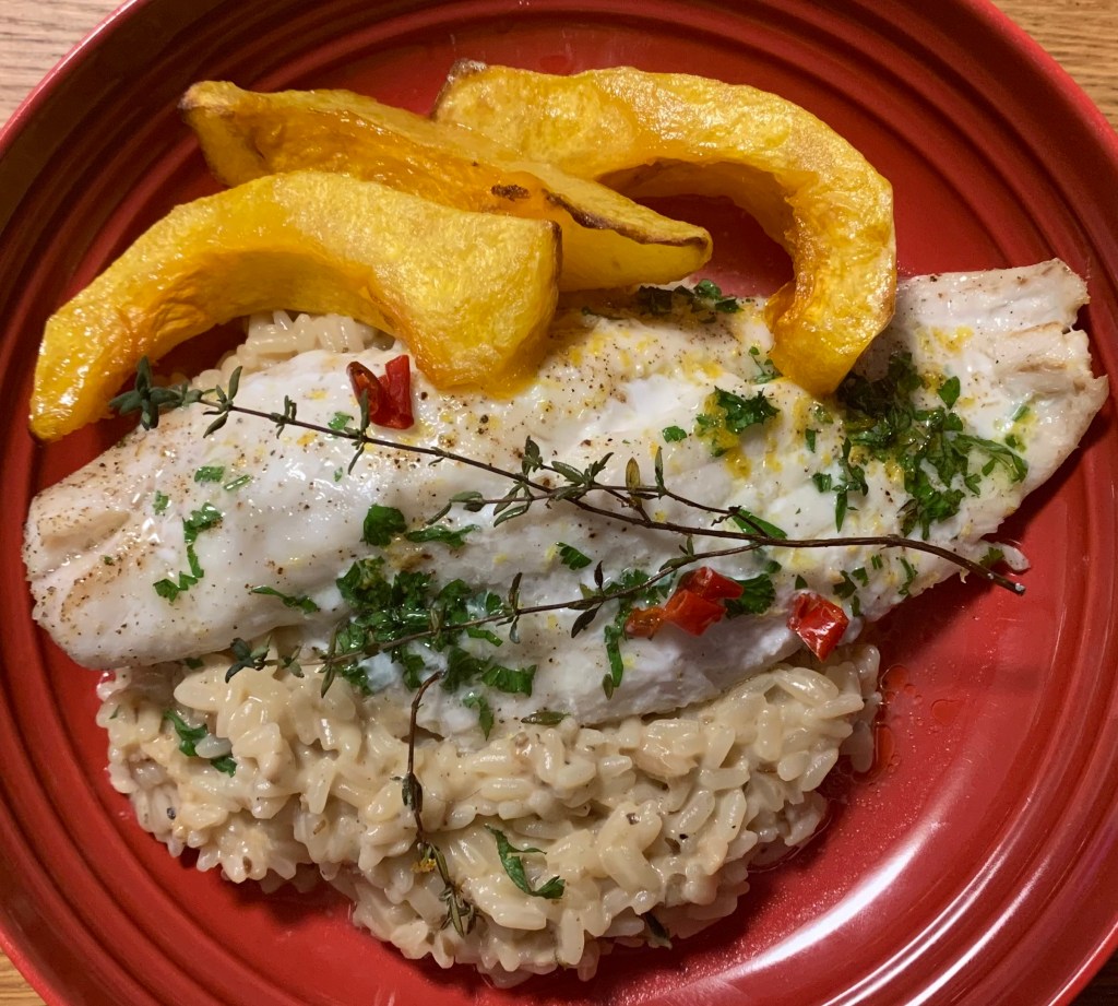 15 minutes at 350 F. With herbs, butter and olive oil. On risotto along with air fryer roasted butternut squash, brown sugar and butter.